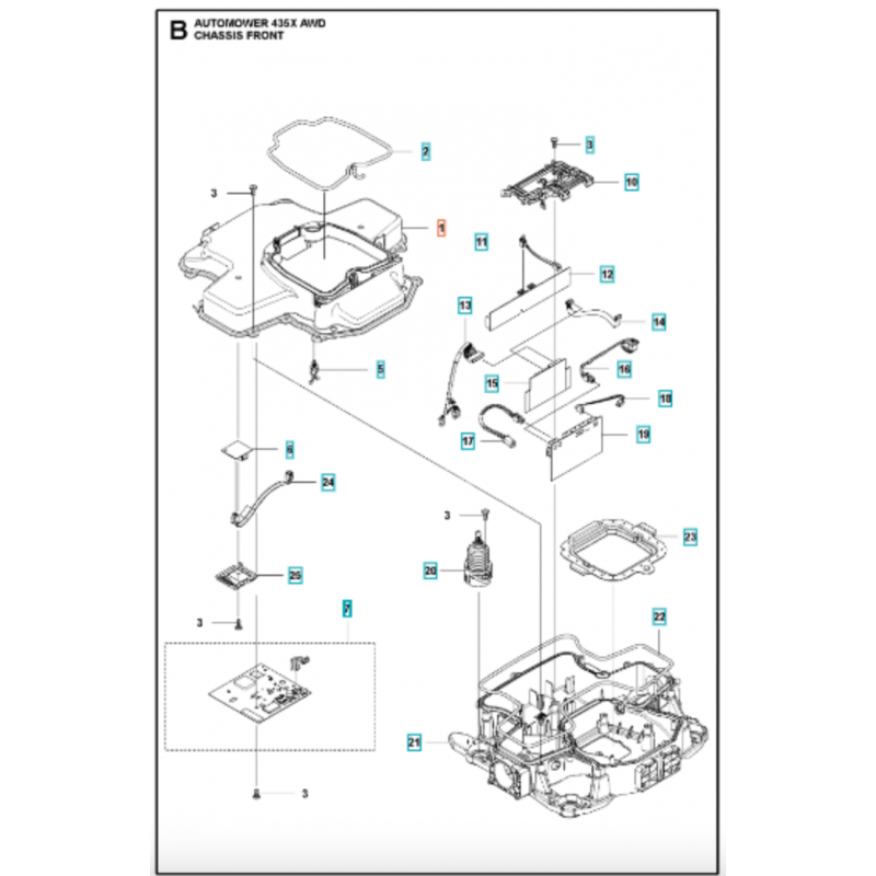 Châssis supérieur avant pour robot Husqvarna 435x AWD
